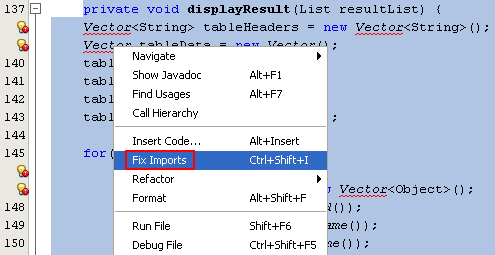 Fix your imports to add java.util.Vector and save your changes. After you save the form you can run the project.
